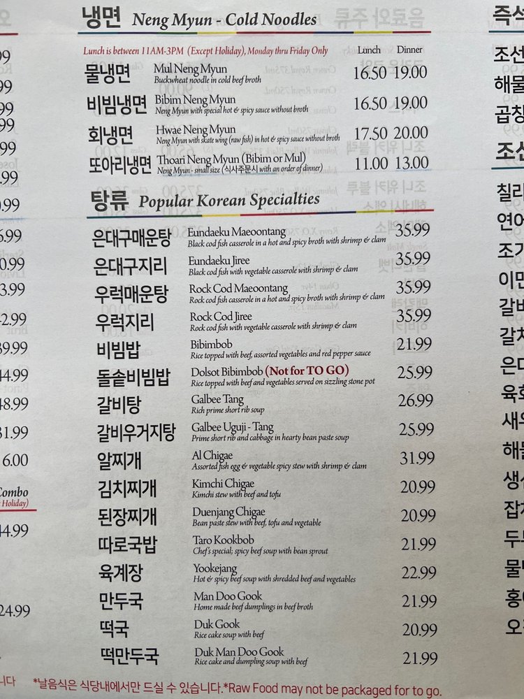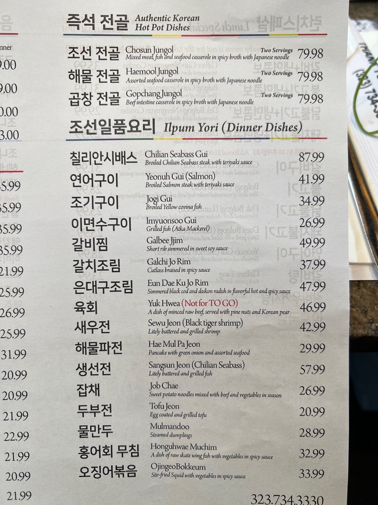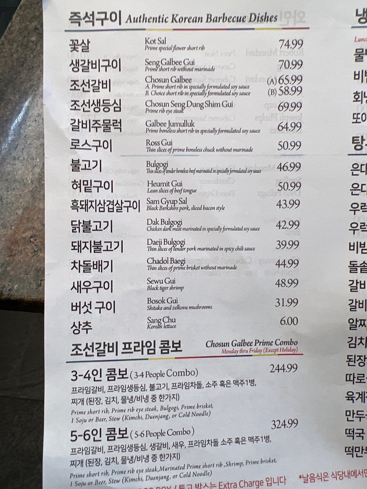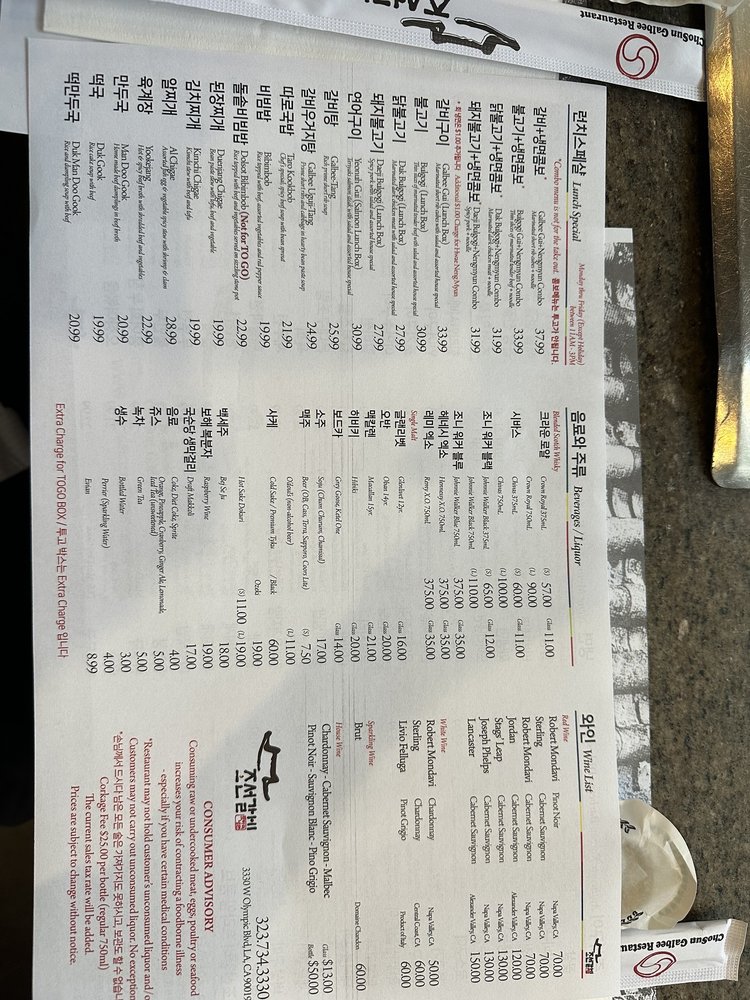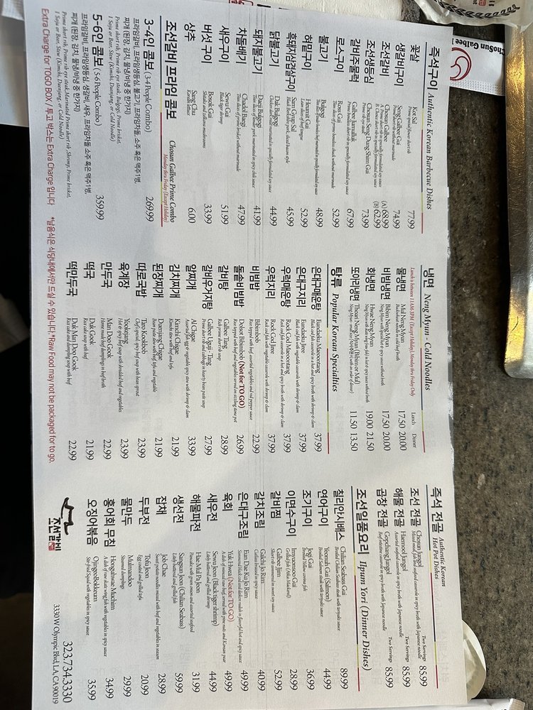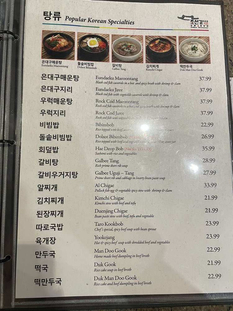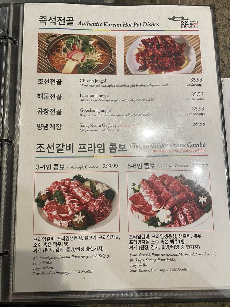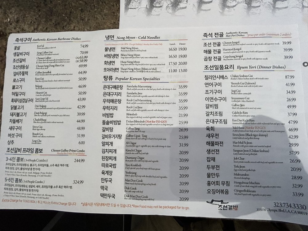 Step into Chosun Galbee, a top-rated Korean barbecue spot in Los Angeles that offers an array of authentic dishes and convenient utilities. From succulent Galbee Jjim short ribs to flavorful Eun Dae Ku Jo Rim black cod, the Ilpum Yori menu will tantalize your taste buds. Indulge in their signature Chosun Galbee short rib cubes or savor their prime Galbi for a premium dining experience. The Neng Myun cold noodles are a refreshing option for a light and satisfying meal. Customers rave about the high-quality meats, attentive service, and cozy ambiance at Chosun Galbee. Whether you're looking for a casual dinner spot or catering for a special event, this restaurant has it all. Don't miss out on the chance to experience the best of Korean cuisine at Chosun Galbee.